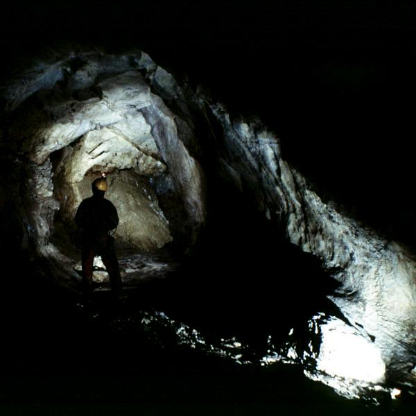 Mike Richardson in the tube of Downstream Lost World (found in 1997) in the Wheelchair Access Series off Triassic Park (discovered 1996).