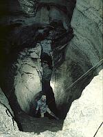 This passage is an offshoot from the large Triassic Park trunk route, and being only 10 minutes from the Scarface entrance was an obvious target for further exploration. Work concentrated on a descending shaft series, wet in places -- making this a potentially serious proposition since the average air temperature in the cave is only just above freezing. The series descended 100m down, over several pitches, but ended in a tight, committing rift and a further very tight descent which was abandoned due to the lack of a sufficiently thin backup team member!
