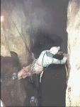 At the bottom of Driller Killer one emerges from the SE to find several ways on. A short rope traverse leads to a larger passage and thence to a pitch, Dead Drill Hole, into a large chamber, Dreaming of Limo.