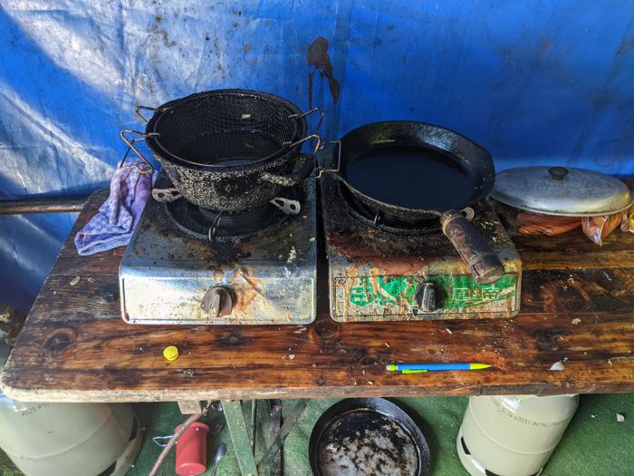 Eventually we outgrew this rather restricted space and moved to the other side of Bad Aussee, at Gasthof Staud'nwirt, by the road to Grundlsee. Here Hilde and Karin Wilpernig have made us very welcome for many years, and have provided us with many luxuries including some office space in 1984 and use of the "Potato Hut" ever since, which has sported a fridge for cold beer since 1995! So vital is this to expo morale that some passage has been named after it.