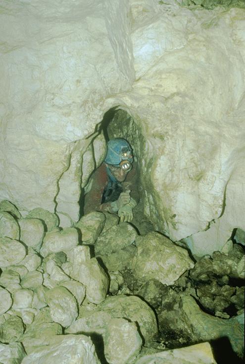 Dave "Scout" Collins emerging from the awkward squeeze (easier since the