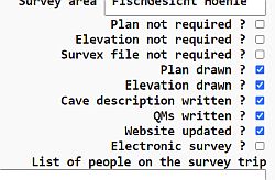 After a survey trip, BEFORE you do anything else, make sure that you write, in ink, visibly, the DATE and the name of the CAVE on the first page of the raw notes. And the NAMES of the people on the trip. LEGIBLY please.