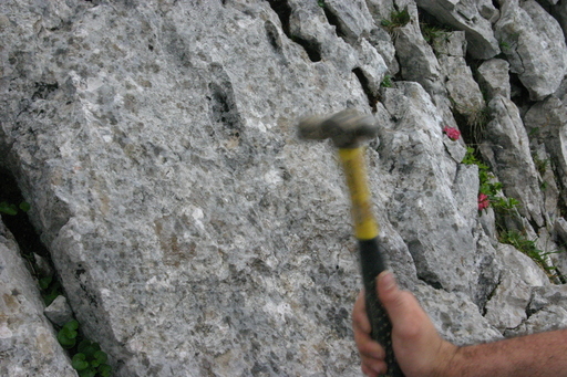 Before you start drilling, "dress" the rock; that is, hammer away the flaky top surface of the rock and flatten out a small area around where your spit is to go.