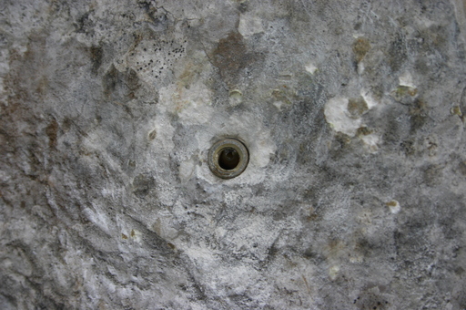 Watch out for the spit cratering; this is when flakes of rock crack away around the rim of the hole. A severely cratered spit is greatly weakened as the end of the sleeve is not supported by the rock. With some types of hanger (bollards and Clowns) it is possible to drive the spit in a bit further into the bottom of the crater, particularly if the rope is thin, but this renders it almost impossible to use other types of hanger with that spit.