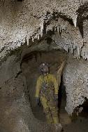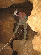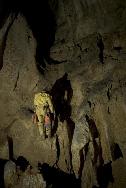 five metres, Eeyore opens out into a moderately large chamber, Kanga. A bolted Y-hang on the right wall drops down to a