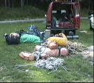 The Staud'nwirt sports a river which is excellent for end-of-expo ropewashing, if it's not in too high a flood! Typical expo gear behind better-than-average transport More typical expo transport - knackered trailer (1995)