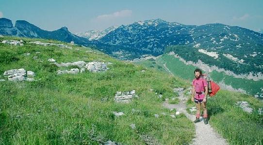 If the main path is followed considerably further, it joins the path from Altausseer See through Hochklapfsattel into a 174m deep doline, around a kilometre long, and eventually to Appel Haus and the Wildensee. Just near this junction it is possible to gain access to the Scarface (1623/161d) entrance to Kaninchenhöhle, but the route is non-obvious and much obstructed by the dwarf pine - CUCC found this approach to be too hard and instead used an approach as for 161a. Much futher on, high up to the left, on Roßkogel, is the area explored by LUSS (mainly in Kataster area 1626).