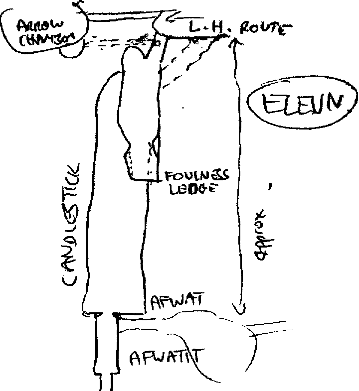 15-20m above Boulder Alley. From there Paul traversed high along the side of