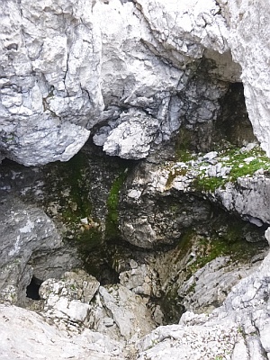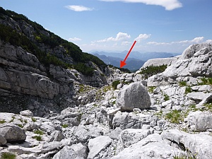 the cave marked on GPS as "1623.p2001-02", then turn right (uphill) and go up