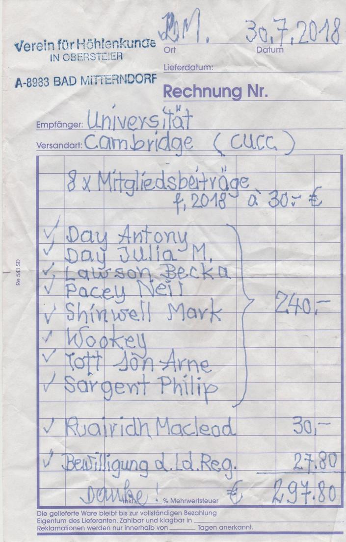 *POSTSCRIPT - on 17th July found a 1981 photo of the entrance which shows that the entrance I found wasn't the main entrance. I had found the upper (smaller) entrance CUCC-PS01-2018 at N 47.66743 E 013.80945 alt. 1547m (WGS84 Garmin Venture Cx) 7