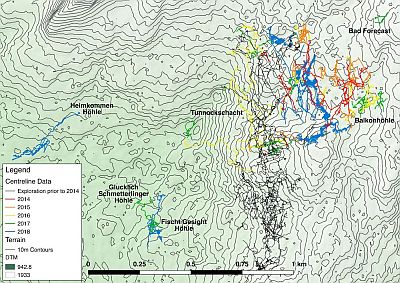 This year's aims are to continue pushing leads from Balkonhoehle, Fischgesicht and Heimkommen left in 2018 (shown).