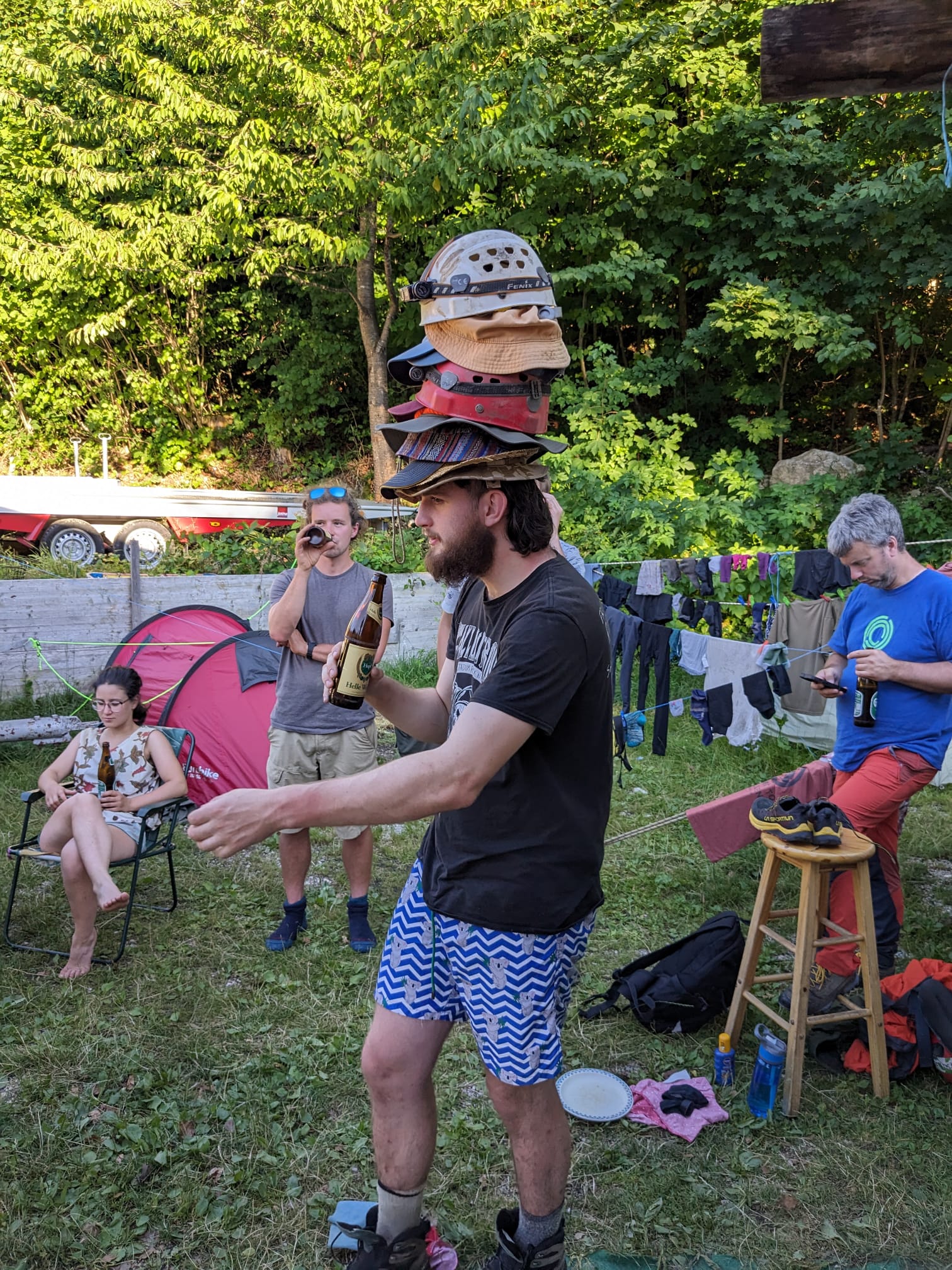 Although few take such statistics seriously, the most dedicated expoers are Becka Lawson (27 expos), Wookey (Wook) (24), and Anthony Day (Dour) (23). Julian Todd holds the record for consecutive expo attendance (10), (along with Mark Shinwell, but he didn't actually go caving on all of those visits). A more obscure record of longest gap between expos has been held by various people since 2004 at 13, and then 17, years, but in 2017 was upped to 34 years by Phil Sargent, which is going to be extremely hard to beat.