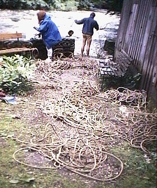 One advantage of basecamp at the Gasthof Staud'n'wirt is the river (Grundlseer Traun) which is not only a cool festering spot and excellent swimming location, but also provides us with some turbulence from a weir which is an ideal place for washing ropes and other gear at the end of each expedition. This only becomes desperate if the river is in high flood, when standing anywhere near the edge of the weir becomes very dodgy indeed !