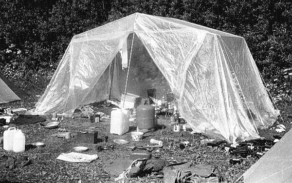 The impoverished mainly-undergraduate expedition of 1978 produced its base camp mess tent from a tent-frame which someone was throwing out and a 24 foot square sheet of heavy gauge polythene. This made a splendid place to watch the Austrian thunderstorms but also formed the most effective fly and wasp trap base camp has ever had.