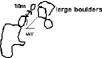 boulder cave (unmarked). About ½ way down, a crawl through boulders to