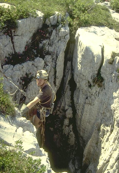 Julian Haines descending B-11 (first explored 1976) to investigate in