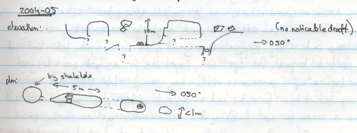 Descended 2000-08 to look at the supposed dig. It didn't go.