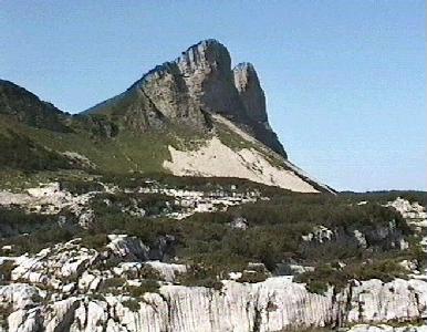 In general, sharp pointy peaks which can be recognised over quite a wide area are best, so that the Bräuning Zinken is excellent. Peaks with very rounded or multiple summits are generally not useful, so that the Vd. Schwarzmooskogel, for example, is particularly bad. In this case, it is useful to include a sketch to say exactly which point was used. The apparent summit, as seen from Top Camp, is usually called "VSK nipple". This is a good 50m below the true summit, but appears well-defined. It is fine for finding caves in the field but is not adequate for locating them on a map.